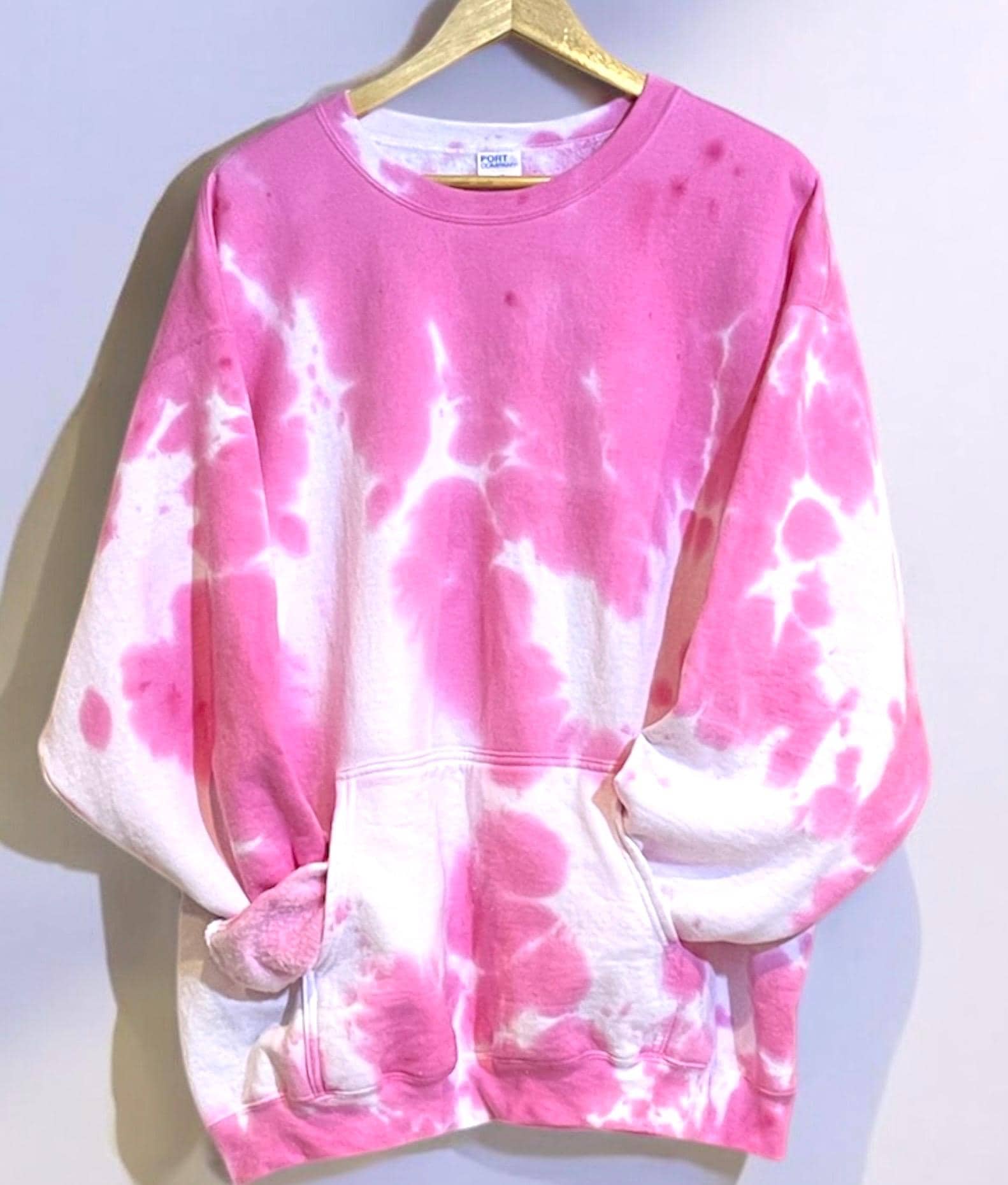 We offer ground advantage shipping on every order. If you'd like to pay for upgrade shipping, you can do so on the checkout page! Please note this does NOT change our processing time - only shipping speed. The perfect midweight crumpled tie dye sweatshirt. Fleece lined, 50/50 cotton/polyester.