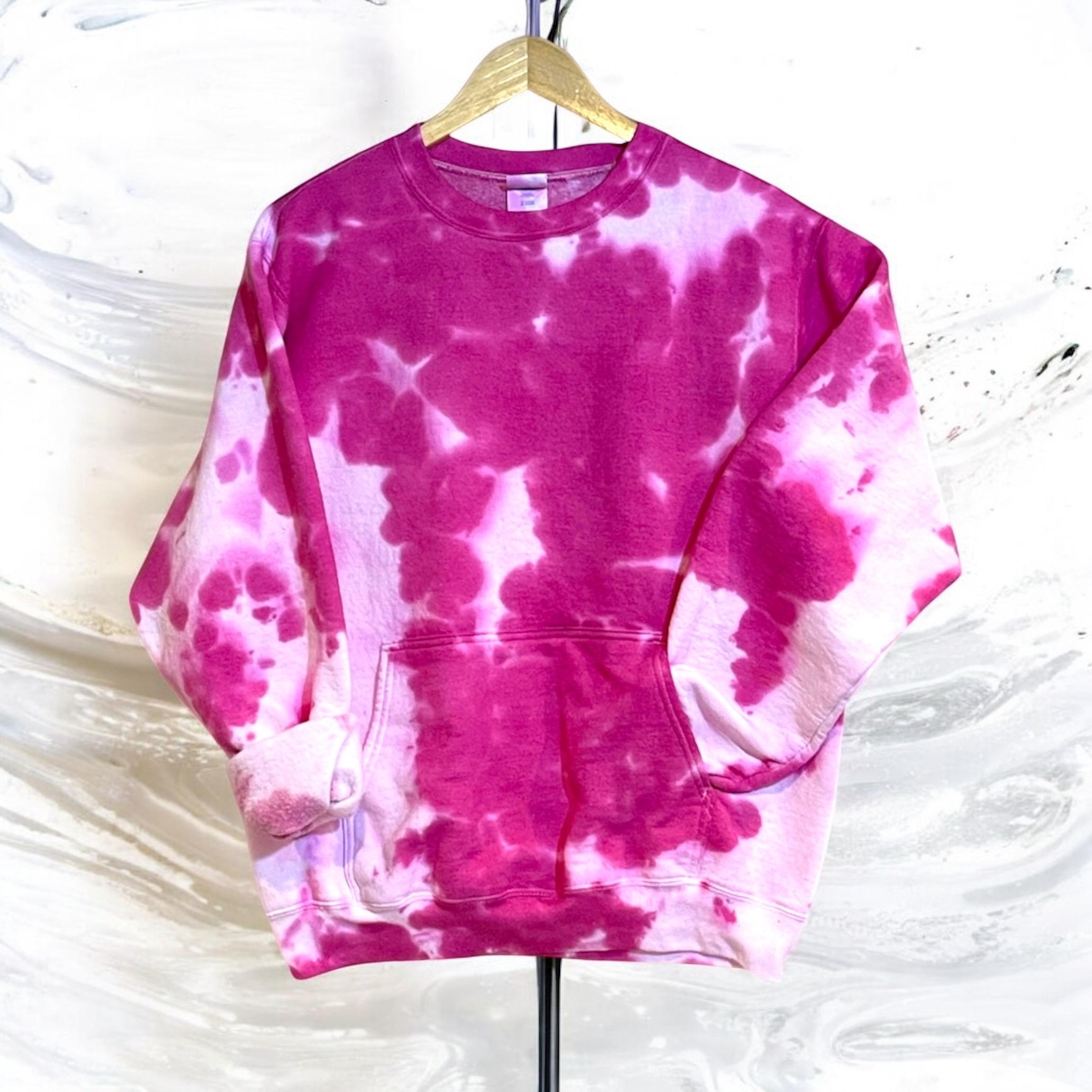 Stay cozy in this unisex crumple tie dye fleece sweatshirt, designed for everyday comfort and unique style. Each piece is hand-dyed, giving it one-of-a-kind color patterns that make your outfit stand out. Made from soft fleece with a convenient kangaroo pocket, this sweatshirt is perfect for lounging, running errands, or pairing with our matching unisex fleece sweatpants (sold separately).