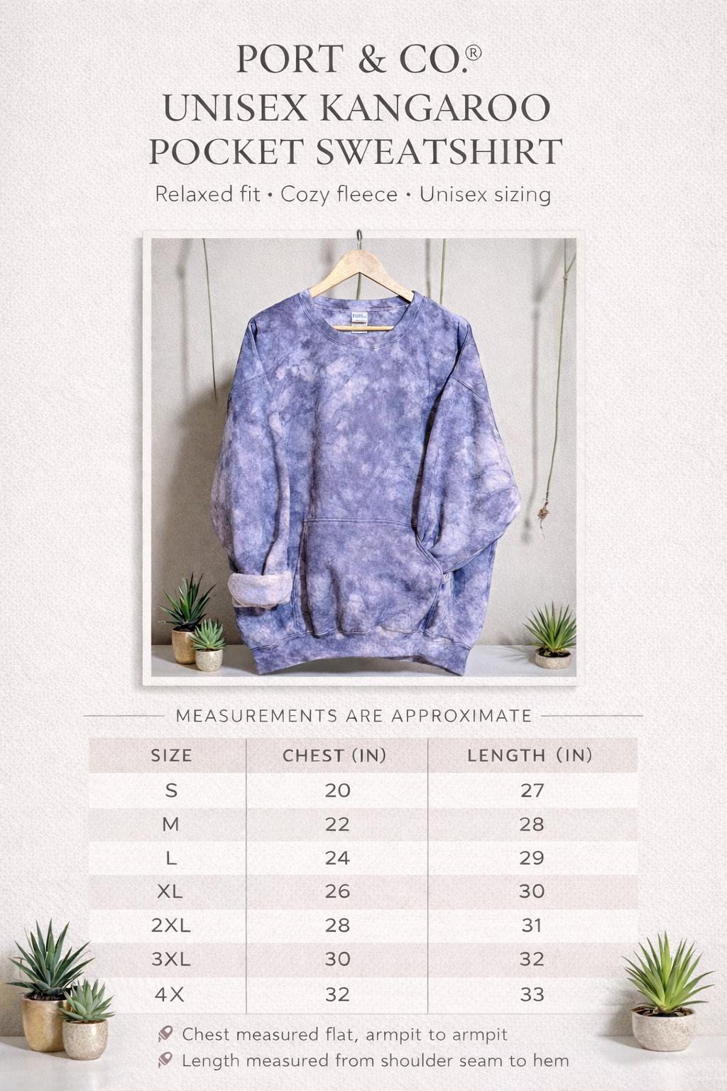 Made using a Port & Company fleece sweatshirt with a cozy kangaroo pocket, these pullovers are equal parts comfort and statement. Dyed, washed, and color-set by hand for a lived-in feel from day one.