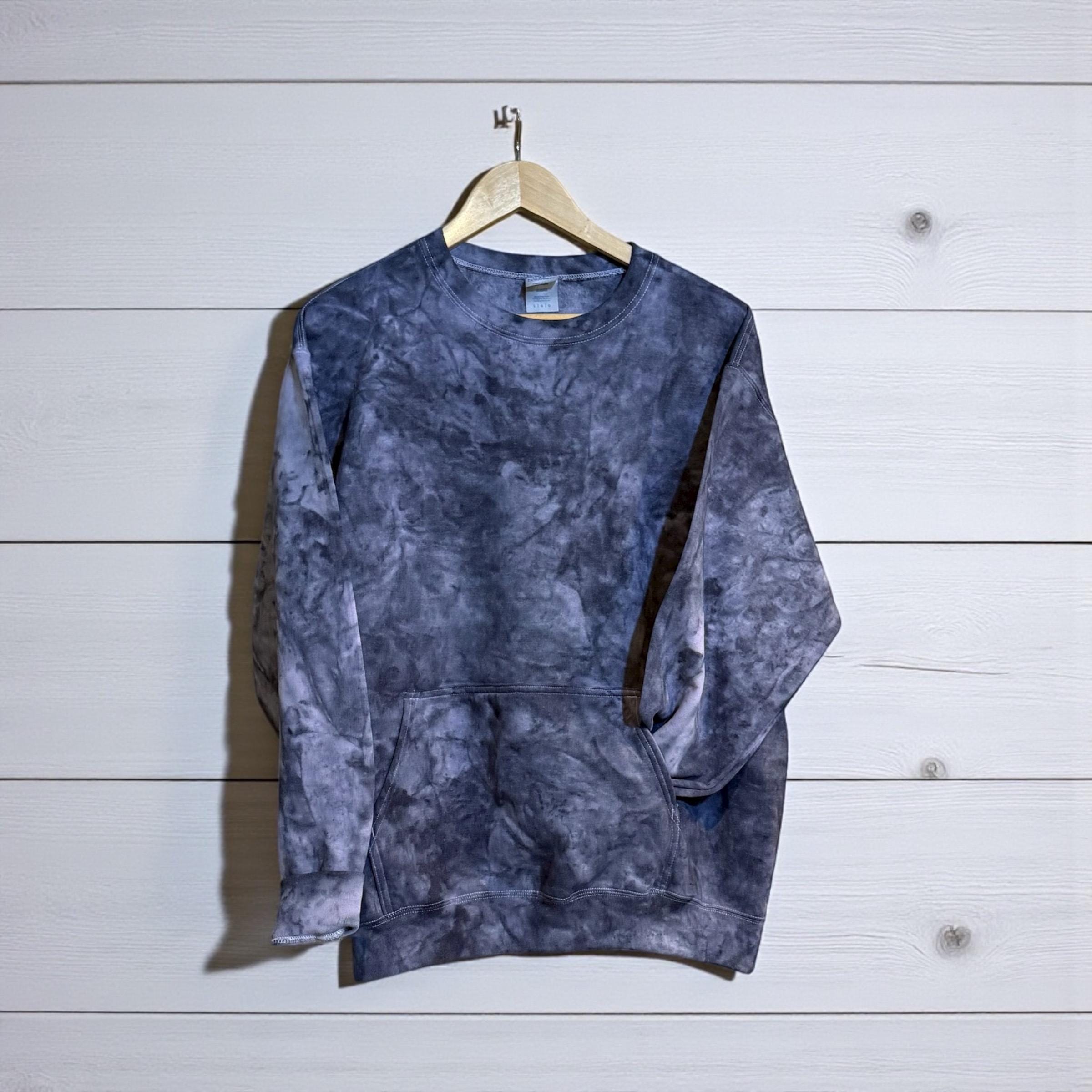 We offer ground advantage shipping on every order. If you'd like to pay for upgrade shipping, you can do so on the checkout page! Please note this does NOT change our processing time - only shipping speed. The perfect midweight crumpled tie dye sweatshirt. Fleece lined, 50/50 cotton/polyester.